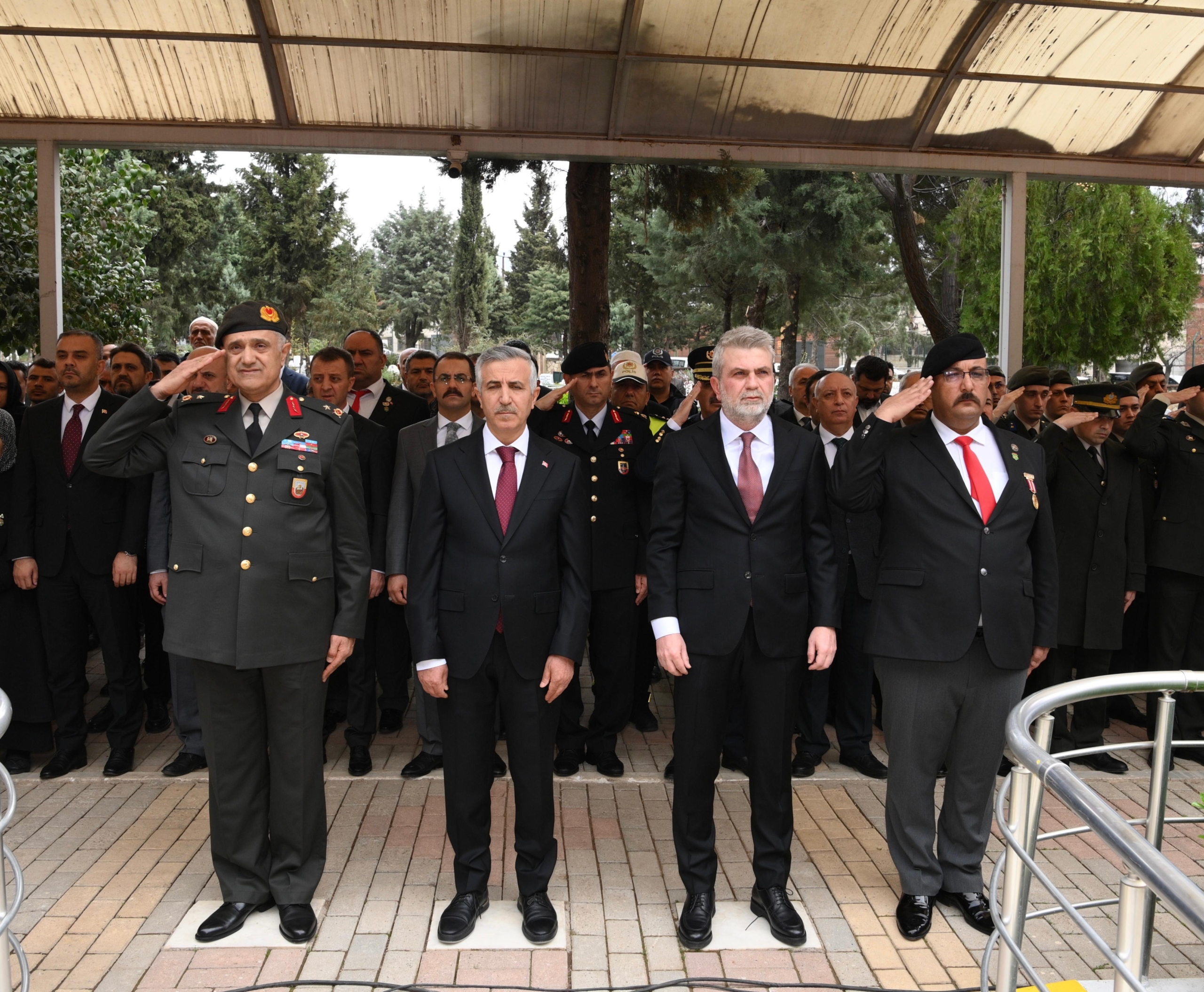 18 Mart Çanakkale Zaferi’nin 110. yıl dönümü ve Şehitleri Anma Günü dolayısıyla Şeyh Adil Mezarlığı Şehitliği’nde anma töreni düzenlendi. Şehir protokolü ve vatandaşların katıldığı törende; Vali Mükerrem Ünlüer, 2. Ordu İdari Kurmay Yarbaşkanı Tuğgeneral Mustafa Er, Büyükşehir Belediye Başkanı Fırat Görgel ve Türkiye Harp Malulü Gaziler, Şehit, Dul ve Yetimleri Derneği Kahramanmaraş Şube Başkanı Mehmet Ali Küpeli, Şehitlik Anıtı’na çelenk sundu. Şehitler, kabirleri başında yâd edilerek mezarlarına karanfiller bırakıldı.