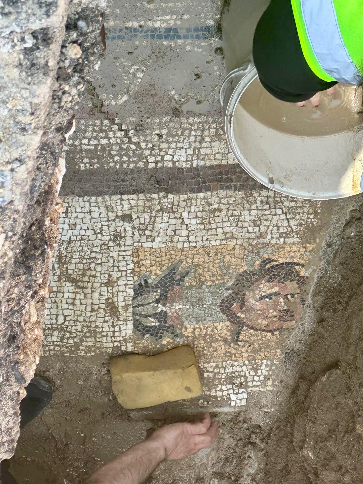 Kahramanmaraş’ta bir mahallede yürütülen altyapı çalışmaları sırasında Roma dönemine ait olduğu değerlendirilen taban mozaiği bulunarak gün yüzüne çıkarıldı.