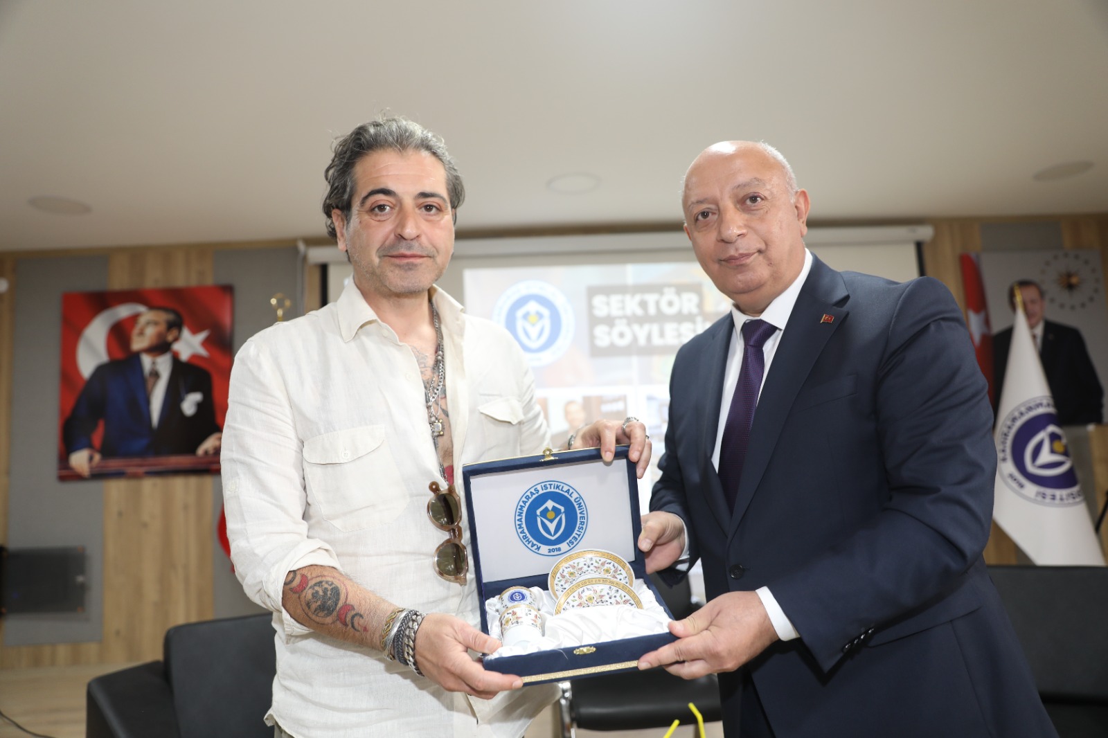KİÜ Rektör Yardımcısı Prof. Dr. Seçil Fettahlıoğlu’nun da katıldığı söyleşi, interaktif ve sohbet havasında gerçekleşirken renkli diyaloglarla birlikte yaklaşık 1,5 saat sürdü. Öğrencilerin merak ettiği tüm konularda cevaplar aldıkları söyleşinin ardından Amani ve Aksoy’a hediye takdiminde bulunuldu. Hazer Amani’nin hediyesi KİÜ Rektörü Prof. Dr. İsmail Bakan, Aksoy’ün hediyesi ise KİÜ Rektör Yardımcısı Prof. Dr. Burcu Erşahan tarafından takdim edildi.