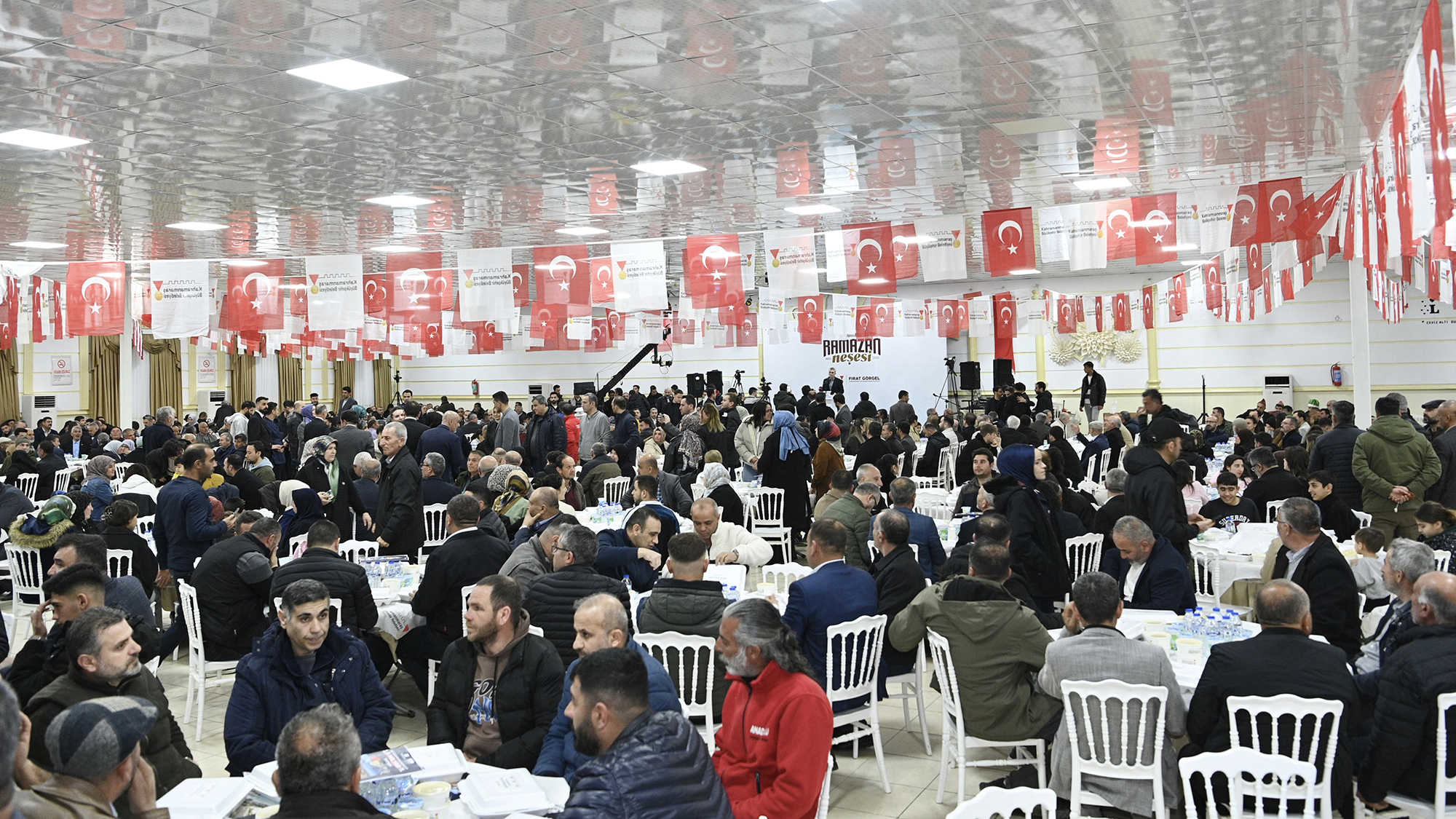 Kahramanmaraş Büyükşehir Belediyesinin Ramazan ayının manevi atmosferini ve paylaşma kültürünü şehrin dört bir yanına taşımak amacıyla hayata geçirdiği “İlçemde İftar Var” programı, bu kez Pazarcık’ta vatandaşları aynı sofrada buluşturdu. İlçede düzenlenen iftar buluşması, Ramazan ayının ruhuna yakışır şekilde birlik, beraberlik ve kardeşlik duygularının yoğun şekilde hissedildiği anlamlı bir akşama sahne oldu. Programa ilçe halkı büyük ilgi gösterirken, iftarın gerçekleştirildiği salon tamamen doldu. 7’den 70’e her yaştan vatandaşın katılım sağladığı buluşmada Pazarcıklılar aynı sofrada bir araya gelerek Ramazan’ın bereketini ve paylaşmanın huzurunu birlikte yaşadı. İlçede adeta gönül sofraları kurulurken, iftar saatinin yaklaşmasıyla birlikte edilen dualar ve okunan ezanla birlikte oruçlar açıldı. Ramazan ayının manevi iklimini hep birlikte yaşayan vatandaşlar, dayanışmanın ve paylaşmanın en güzel örneklerini sergiledi. Programa; 66. Hükümet Tarım ve Orman Bakanı Prof. Dr. Vahit Kirişci, Büyükşehir Belediye Başkanı Fırat Görgel, AK Parti İl Başkanı Muhammed Burak Gül, Pazarcık Belediye Başkanı Haydar İkizer ve AK Parti Pazarcık İlçe Başkanı Halit Karabudak da katıldı. Şehir protokolü, iftar öncesinde ve sonrasında vatandaşlarla yakından ilgilenerek sohbet etti, Ramazan aylarını tebrik etti.