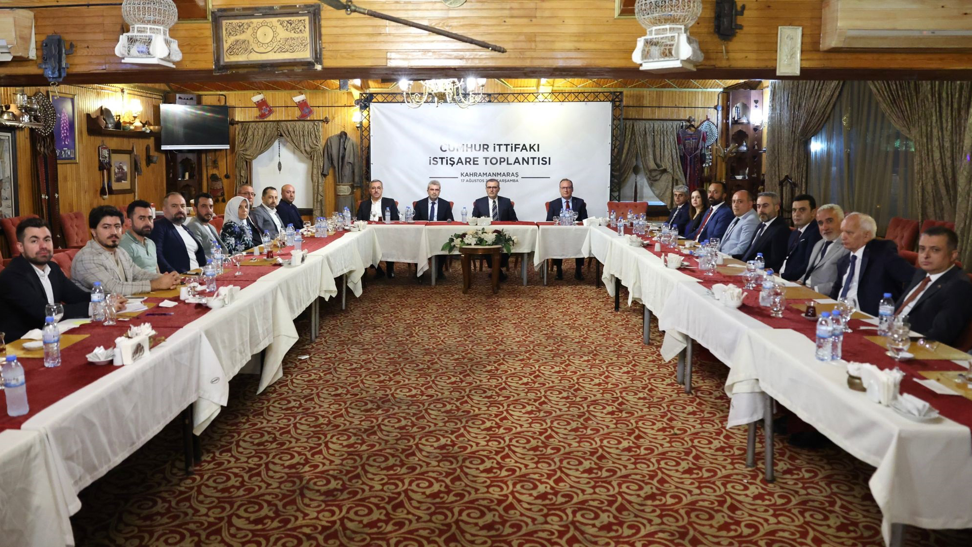 Kahramanmaraş Büyükşehir Belediye Başkanı Hayrettin Güngör, Cumhur İttifakı İstişare Toplantısı’na katıldı. AK Parti Grup Başkanvekili Mahir Ünal’ın öncülüğünde düzenlenen toplantıya, AK Parti İl Başkanı Fırat Görgel, Milliyetçi Hareket Partisi İl Başkanı Ertuğrul Doğan ve parti teşkilatları katıldı. Şehirdeki yatırımlara ve projelere dair görüş alışverişinde bulunulan toplantıda, birlik mesajı verildi. Toplantıya ilişkin açıklamada bulunan Başkan Güngör, “Cumhur İttifakı İstişare Toplantımızı gerçekleştirdik. İlk günkü heyecan ve inançla 2023 ve nice zaferlere birlikte yürüyeceğiz” ifadelerini kaydetti.