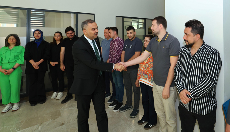 Başkan Toptaş, bayramlaşma ziyaretlerinde personelle tek tek tokalaşarak bayramlarını kutladı, hal ve hatırlarını sordu.