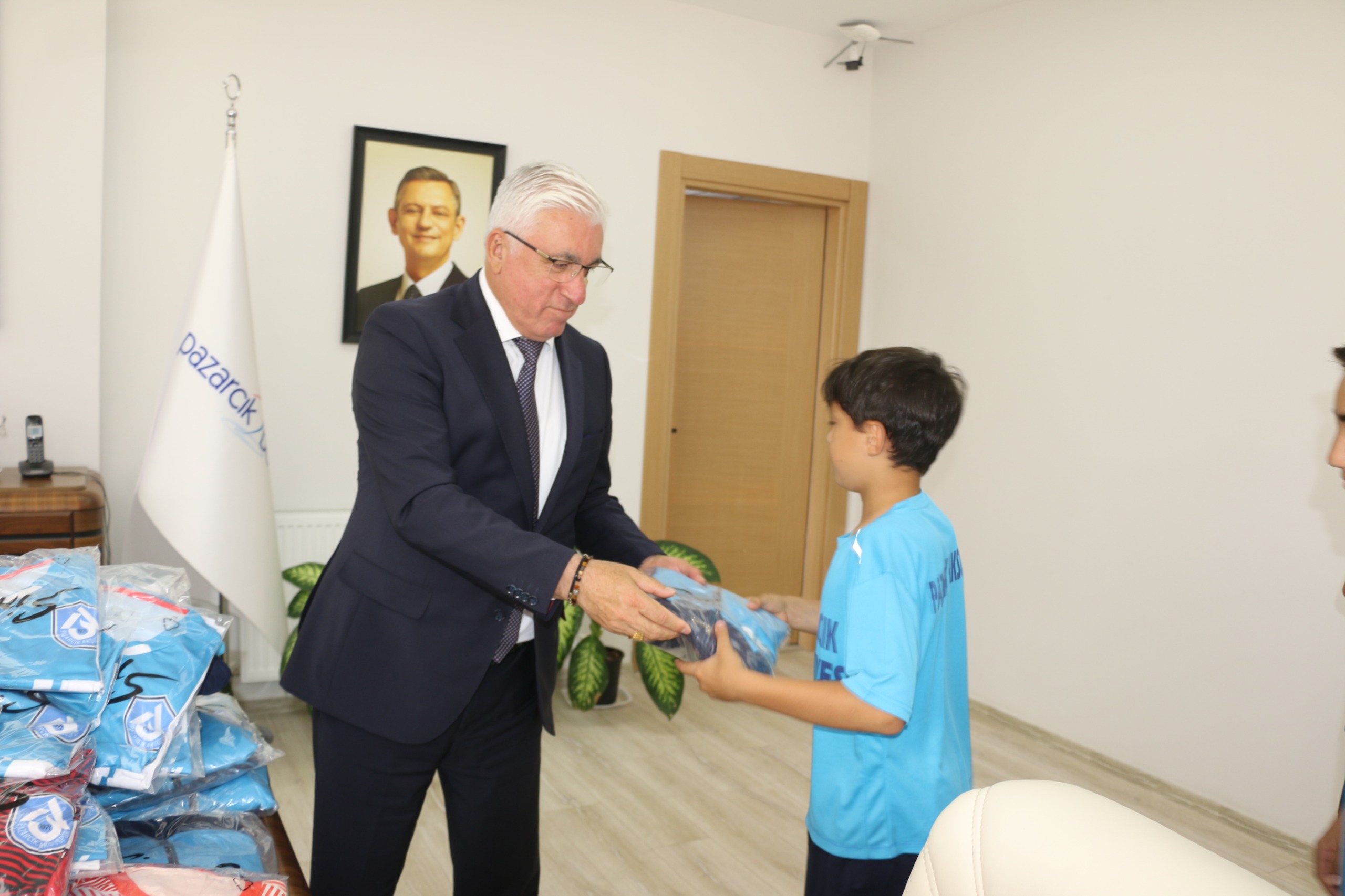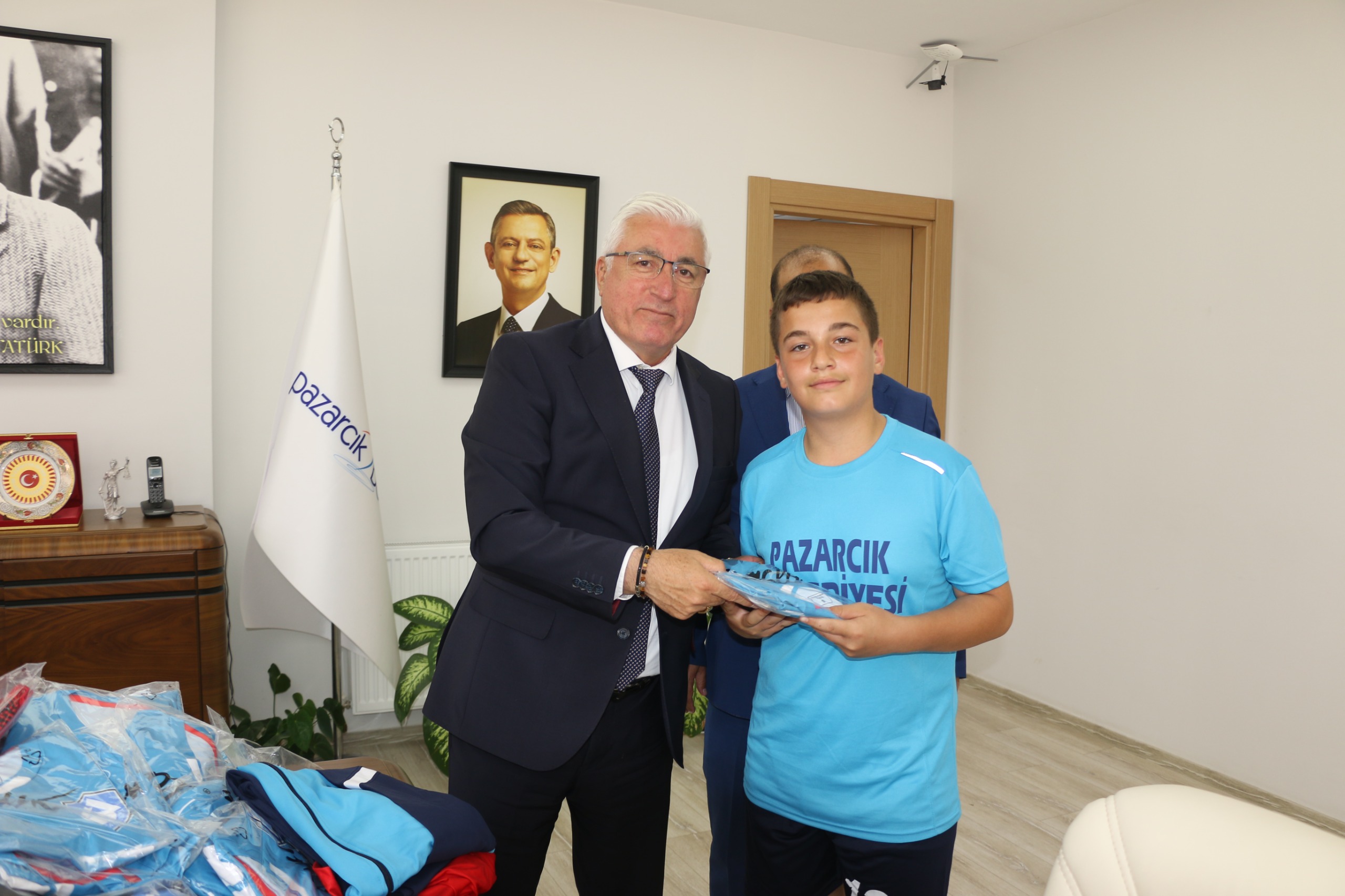 Pazarcık Belediyesi, gençliğe ve spora olan desteğini kararlılıkla sürdürüyor. Pazarcık Belediye Başkanı Av. Haydar İKİZER, ilçede faaliyet gösteren Aksuspor Kulübü U13 Futbol Takımı’na belediye tarafından sağlanan malzeme desteğini, sporculara bizzat takdim etti.