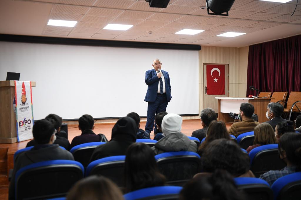 Maarif Anadolu Lisesi ve Bahçeşehir Koleji öğrencileriyle buluşan Başkan Mahçiçek, EXPO 2023’ün nasıl yapılacağını, içinde neler olduğunu, şehrimize neler katacağını ve şehrimizin nasıl marka değeri kazanacağını anlattı.