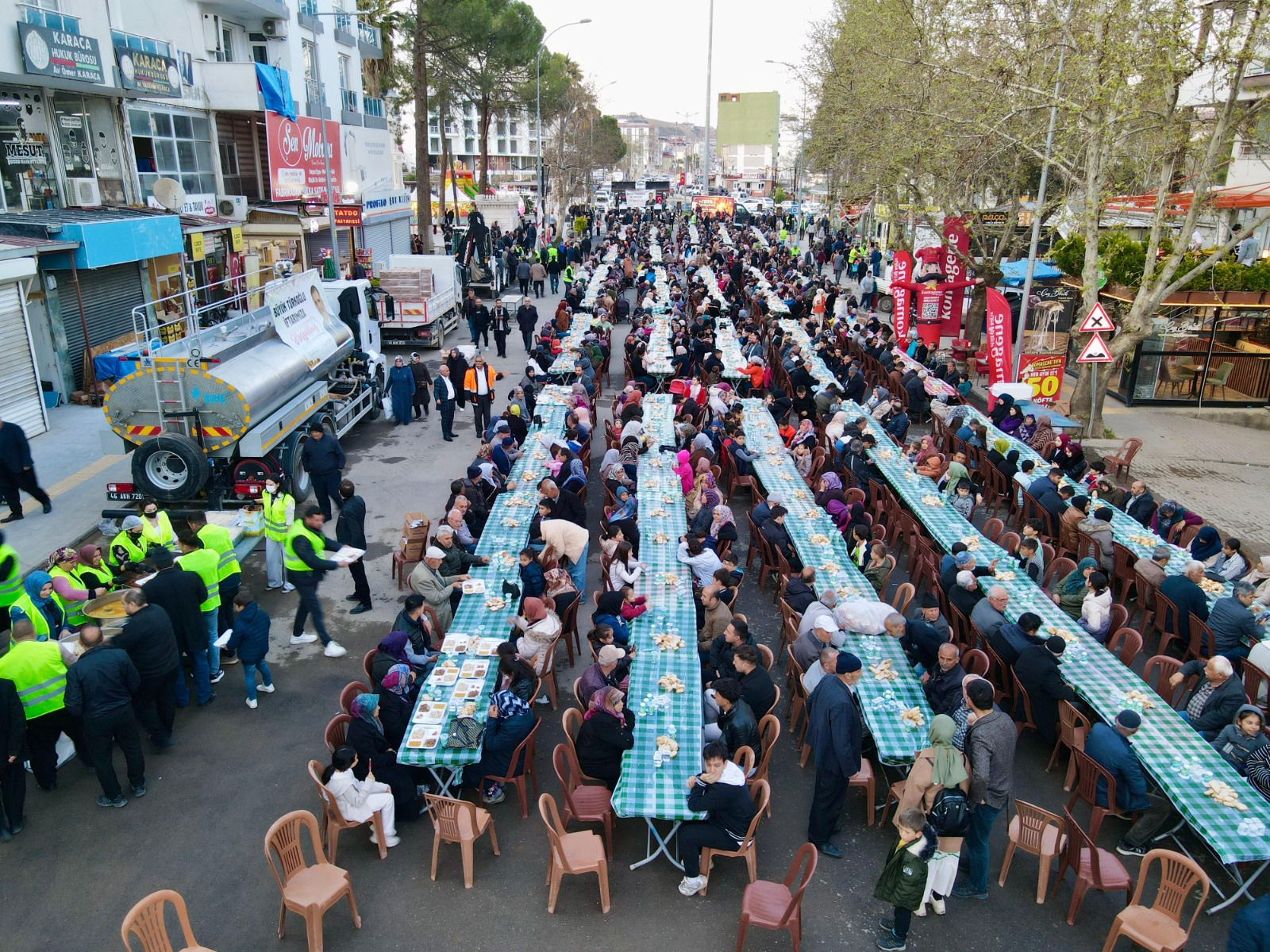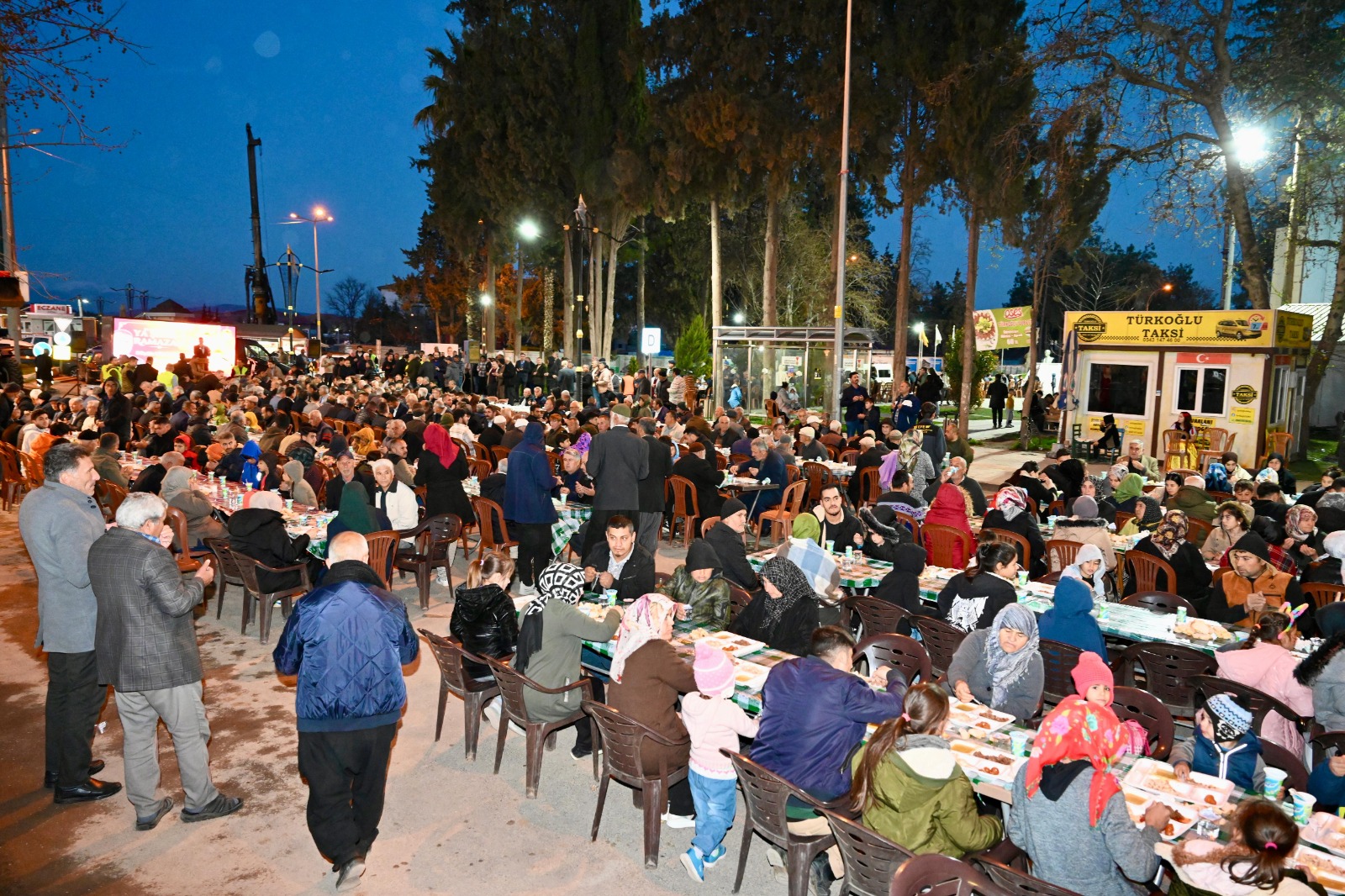 Türkoğlu Belediyesi tarafından düzenlenen büyük Türkoğlu iftarına binlerce vatandaş katıldı. Türkoğlu Kent Meydanı’nda gerçekleşen iftar programı, sema gösterileri, çocuk oyun alanları ve palyaço gösterileri gibi etkinliklerle renklendi. Ayrıca, belediyenin yeni aldığı iş makineleri de iftar alanında sergilendi.