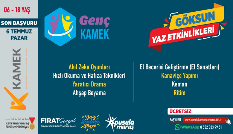 Yaz tatilini verimli, üretken ve eğitici faaliyetlerle değerlendirmek isteyen gençler için Ekinözü, Göksun, Andırın ve Çağlayancerit’te Kahramanmaraş Büyükşehir Belediyesi tarafından düzenlenecek olan yaz kurslarına başvurular tüm hızıyla devam ediyor. 6 – 18 yaş aralığındaki çocuk ve gençlere yönelik hazırlanan eğitim programları, alanında uzman eğitmenler eşliğinde gerçekleştirilecek. Kurslara katılan gençler hem yeni beceriler kazanacak hem de eğlenceli bir yaz tatili geçirecek. Tamamen ücretsiz olarak sunulan bu eğitimlere başvurular, 6 Temmuz Pazar akşamına kadar çevrimiçi olarak alınacak. Başvuru yapmak isteyenler, https://kahramanmaras.bel.tr/duyuru/2025/06/27/genc-kamek-ilce-kurslari-basvurusu adresinden işlemlerini gerçekleştirebilecek.