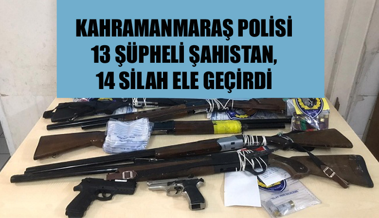 Kahramanmaraş İl Emniyet Müdürlüğü ekiplerinin son bir haftalık çalışmasında; silah taşıyan, silah kullanan ve silah kullanmaya teşebbüs eden 13 şüpheli 14 adet silahla birlikte suçüstü yakalandı. Kah...