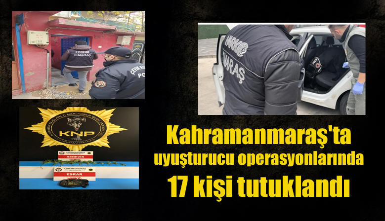 Kahramanmaraş’ta son iki haftada düzenlenen narkotik operasyonlarında gözaltına alınan 17 kişi tutuklandı. Edinilen bilgiye göre, İl Emniyet Müdürlüğü Narkotik Suçlarla Mücadele Şube Müdürlüğünc...