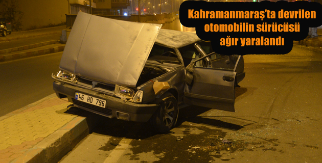 Kahramanmaraş’ta devrilen otomobilin sürücüsü ağır yaralandı