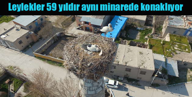 Leylekler 59 yıldır aynı minarede konaklıyor