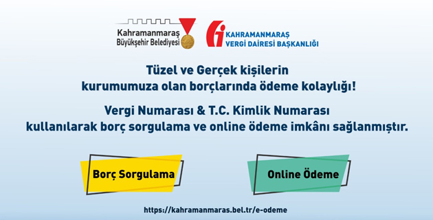 Kahramanmaraş Büyükşehir Belediyesi esnaflara ve vatandaşlara yönelik e- ödeme hizmetlerine devam ediyor. Konu ile ilgili olarak bir açıklama yapan Kahramanmaraş Büyükşehir Belediyesi Bilgi İşlem Dair...