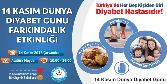 Kahramanmaraş Büyükşehir Belediyesi ve İl Sağlık Müdürlüğü işbirliği ile Dünya Diyabet Günü dolayısıyla bir etkinlik düzenlenecek. “Diyabet; Her Aileyi İlgilendirir” sloganı ile yapılacak etkinlik 14 ...