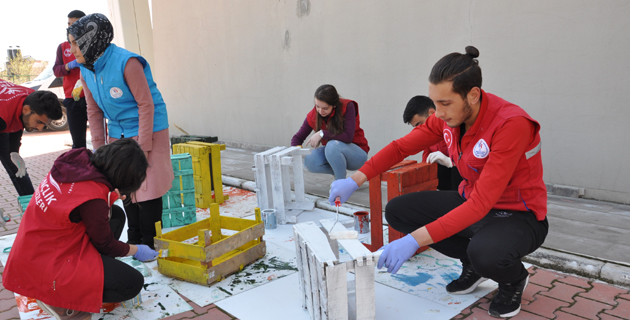 Kahramanmaraş’ın Elbistan ilçesinde bir grup gönüllü genç, topladıkları tahta sebze meyve kasalarını onardıktan sonra rengarenk boyayıp, bunlarla kırsal mahalle okullarında kütüphane kuruyor. El...