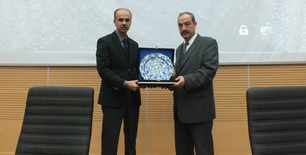 Kahramanmaraş Sütçü İmam Üniversitesi (KSÜ) Mühendislik ve Mimarlık Fakültesi Bilgisayar Mühendisliği Bölüm Başkanı Prof. Dr. İbrahim Taner Okumuş, üniversitemiz Rektörü Prof. Dr. Niyazi Can tarafında...