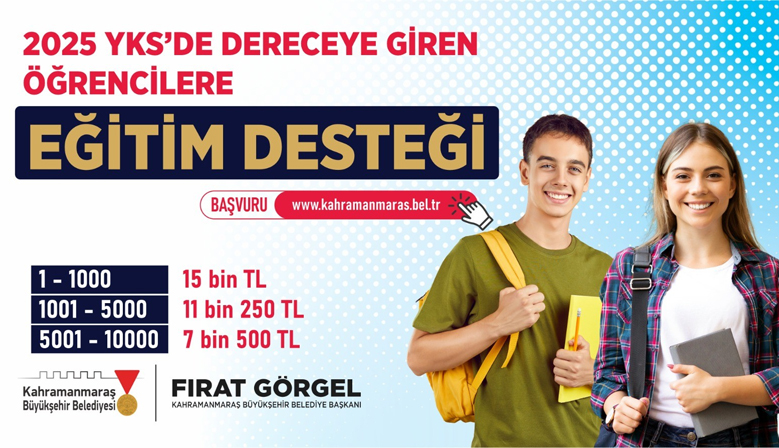 Büyükşehir Belediyesi, Yükseköğretim Kurumları Sınavı’nda (YKS) dereceye giren öğrencilere eğitim desteği sağlayacak. Dereceye giren öğrenciler, Büyükşehir Belediyesinin internet adresinden çevrimiçi ...