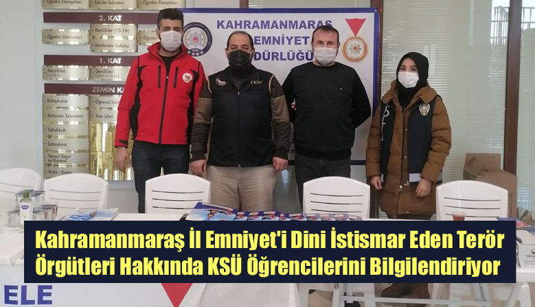 Kahramanmaraş İl Emniyet Müdürlüğü, bilgilendirme ve önleme faaliyetleri kapsamında Kahramanmaraş Sütçü İmam Üniversitesi (KSÜ) İlahiyat Fakültesinde stant açarak, dini istismar eden terör örgütleri h...