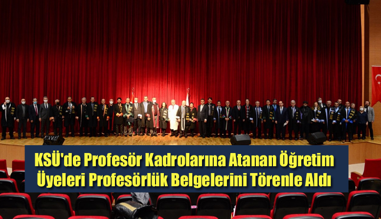 2018-2022 tarihleri arasında profesör kadrosuna atanan Kahramanmaraş Sütçü İmam Üniversitesi (KSÜ) öğretim üyeleri profesörlük belgelerini törenle aldı. KSÜ Yunus Emre Kongre ve Kültür Merkezi Sezai K...