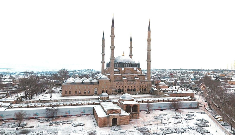 Selimiye Camisi kar altında görüntülendi