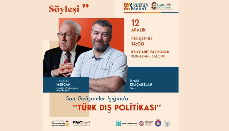 Büyükşehir Belediyesi, Türkiye’nin emekli Washington Büyükelçisi Hasan Murat Mercan ve yazar İsmail Kılıçarslan’ın katılımıyla 12 Aralık Perşembe günü “Son Gelişmeler Işığında Türk Dış Politikası” kon...