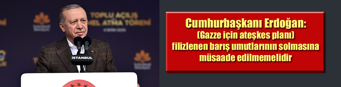Cumhurbaşkanı Erdoğan: (Gazze için ateşkes planı) filizlenen barış umutlarının solmasına müsaade edilmemelidir