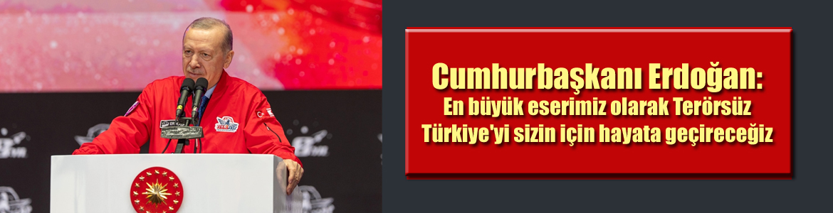 Cumhurbaşkanı Recep Tayyip Erdoğan, “İçinde bulunduğumuz asrı Türkiye Yüzyılı yapana kadar durmayacak, çalışacağız. En büyük eserimiz olarak Terörsüz Türkiye’yi sizin için hayata geçireceğ...