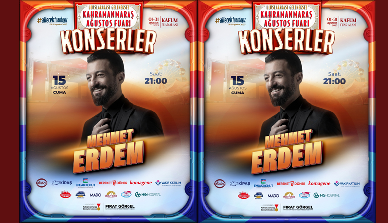 Geleneksel Ağustos Fuarı’nda 15 Ağustos Cuma günü, Türk pop müziğinin sevilen isimlerinden Mehmet Erdem sahne alarak Kahramanmaraşlılarla buluşacak. Saat 21.00’da başlayacak konserde Mehmet Erdem’in e...