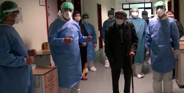 Kahramanmaraş Sütçü İmam Üniversitesi (KSÜ) Eğitim, Sağlık ve Araştırma Hastanesinde yeni tip koronavirüs (Kovid-19) tedavisi gören 101 yaşındaki Ömer Dinler, 10 günde hastalığı yenerek taburcu edildi...