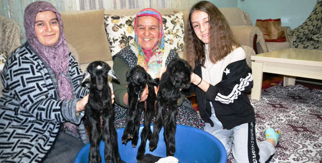 Kahramanmaraş’ta üçüz doğan oğlakları evlerinde biberonla besliyorlar