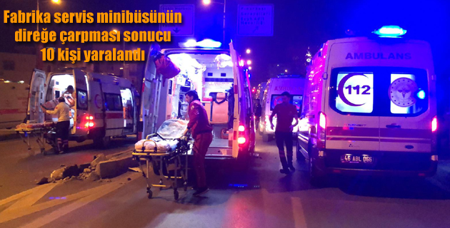 Fabrika servis minibüsünün direğe çarpması sonucu 10 kişi yaralandı