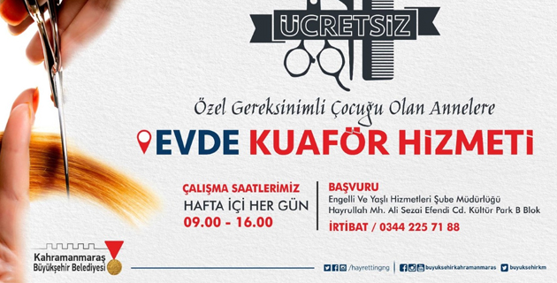 Büyükşehir Belediyesi özel gereksinimli çocuğu olan anneler için evde kuaför hizmetine başladı. Kahramanmaraş Büyükşehir Belediyesi, sürdürdüğü sosyal hizmet çalışmalarına bir yenisini daha ekledi. Kı...