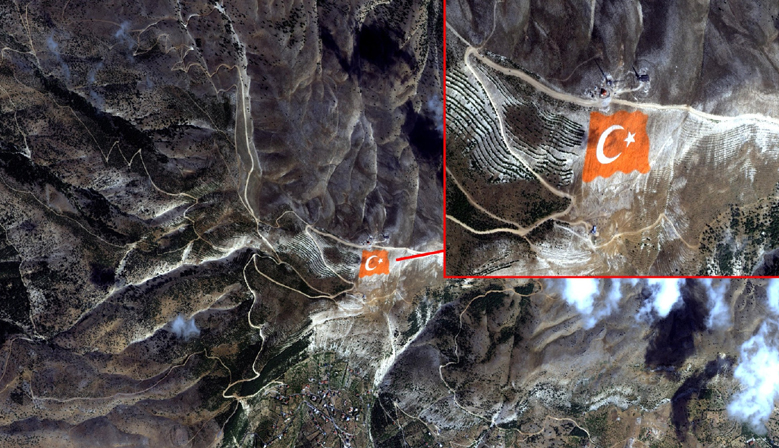 Onikişubat Belediyesi’nin Kahramanmaraş’ın simgesi haline gelen ve 40 dönümlük bir alanda Ahır Dağı’na işlediği “dünyanın en büyük Türk Bayrağı” projesi, bu kez uzaydan görüntülendi. Ahır Dağı’nın zir...