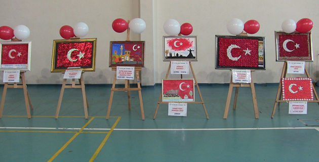 Kahramanmaraş’ın Elbistan ilçesinde “81 ilde şanlı bayrağım” projesi kapsamında, Azerbaycan’da öğrenciler tarafından yöresel ürünler kullanılarak yapılan bayrakların sergisi a...