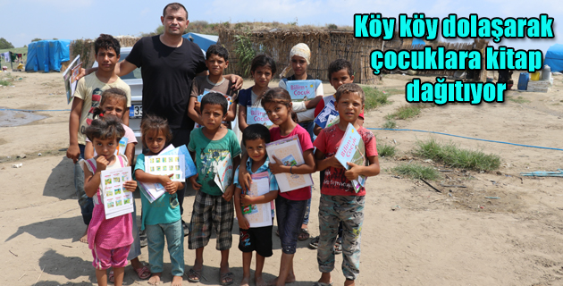 Köy köy dolaşarak çocuklara kitap dağıtıyor