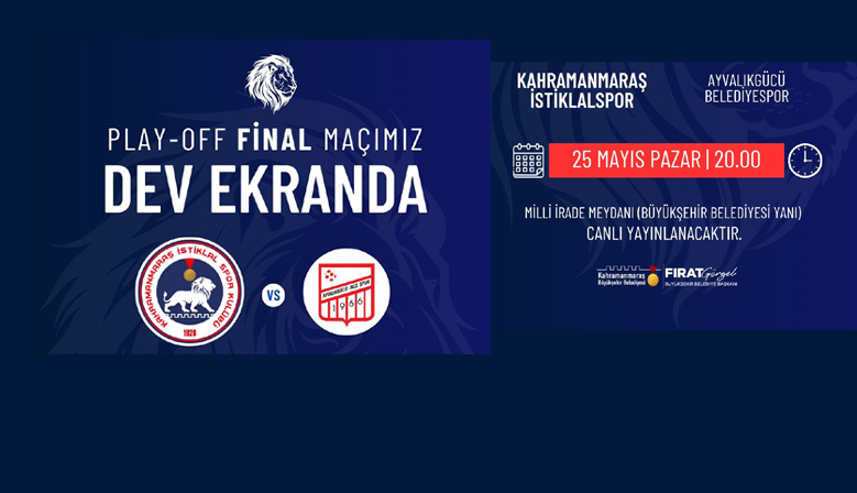 Büyükşehir Belediyesi, Kahramanmaraş İstiklalspor’un 25 Mayıs Pazar günü oynayacağı play-off final müsabakasını Milli İrade Meydanı’nda kuracağı dev ekranda sporseverlerle buluşturacak. Kahramanmaraş ...