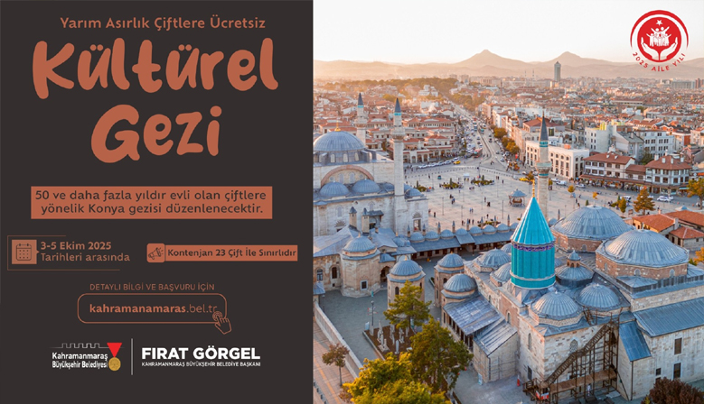 Büyükşehir Belediyesi, 2025 Aile Yılı kapsamında 50 ve üzeri yıldır evliliklerini sürdüren 23 çifti Konya’ya kültür gezisine götürecek. Ücretsiz olarak düzenlenecek geziye başvurular Büyükşehir’in int...