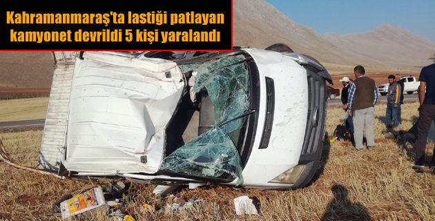 Kahramanmaraş’ın Elbistan ilçesinde, lastiği patlayan kamyonetin devrilmesi sonucu 5 kişi yaralandı. Bünyamin Balıkçı (47) idaresindeki 20 R 1836 plakalı kamyonetin, Elbistan-Ekinözü kara yolu G...