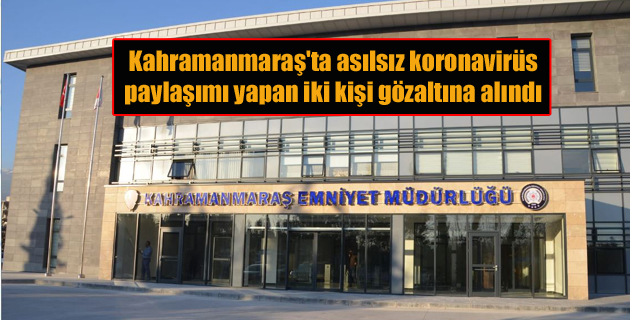 Kahramanmaraş’ta, sosyal medya üzerinden yeni tip koronavirüsle (Kovid-19) ilgili asılsız paylaşımda bulunduğu tespit edilen 2 kişi gözaltına alındı. Alınan bilgiye göre, sosyal medya hesapları ...