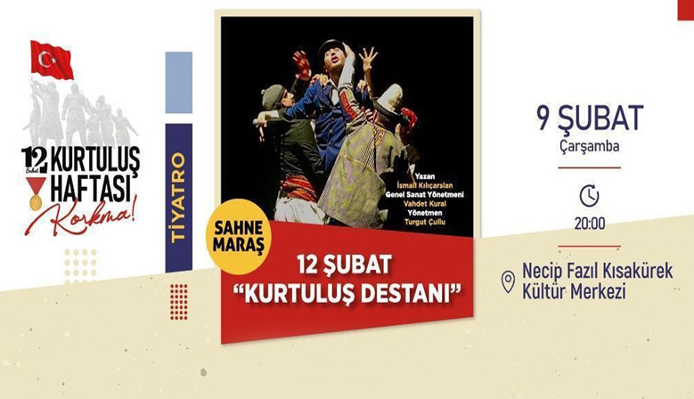 Büyükşehir Belediyesi tarafından düzenlenen Kurtuluş Haftası kutlama etkinlikleri, Sahne Maraş oyuncularının sahneleyeceği ‘12 Şubat Kurtuluş Destanı’ isimli tiyatroyla devam edecek. Milli Mücadelenin...