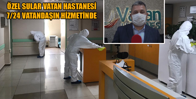ÖZEL SULAR VATAN HASTANESİ 7/24 VATANDAŞIN HİZMETİNDE Özel Sular Vatan Hastanesi Sık Sık Dezenfekte Ediliyor Başhekim Kemal Yüzbaşıoğlu: 7/24 Vatandaşımızın Hizmetindeyiz Dünyayı etkisi altına alan Ko...