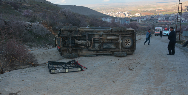 Elbistan’da devrilen kamyonetteki 2 kişi yaralandı