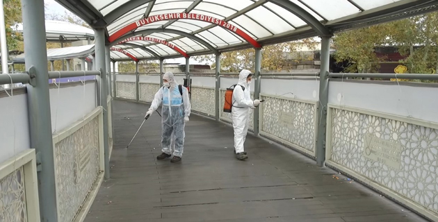 Büyükşehir Belediyesi hafta sonu uygulanan sokağa çıkma yasağını fırsata çevirerek insanların yoğun olarak kullandığı alanlarda dezenfekte çalışması yaparken, aynı zamanda temizlik çalışmalarını da ge...