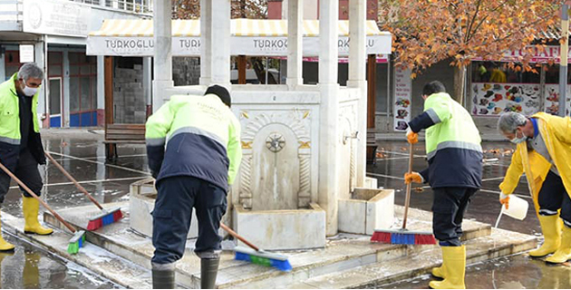 Türkoğlu Belediyesi temizlik ekipleri sahada