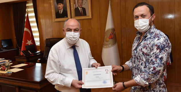 Kahramanmaraş Valisi Ömer Faruk Coşkun, fıstık toplarken ayağı kırılan yaralıyı ambulansa ulaştırmak için yaklaşık 1 kilometre sırtında taşıyan sağlık teknikeri Özgür Davarcı’ya başarı belgesi v...