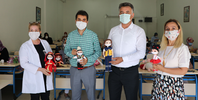 Tescilli örgü bebeklerle, çocuklara maske kullanımını aşılıyorlar