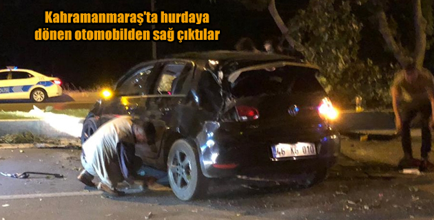 Kahramanmaraş’ta hurdaya dönen otomobilden sağ çıktılar