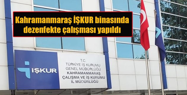 Kahramanmaraş Çalışma ve İş Kurumu’nda (İŞKUR) görevli bir kişinin yeni tip koronavirüs (Kovid-19) testinin pozitif çıkması üzerine kurumda dezenfekte çalışması yapıldı. Alınan bilgiye göre, İŞK...