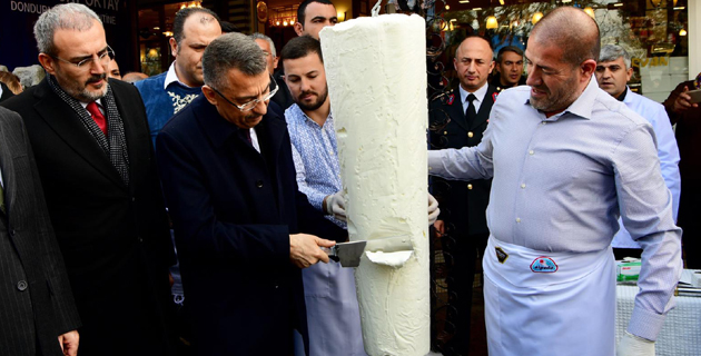 Cumhurbaşkanı Yardımcısı Fuat Oktay’a, Kahramanmaraş’ta şehit aileleri ve gazilerle bir araya geldiği yemeğin ardından Kervanhan Alpedo Lezzet Grubu Yönetim Kurulu Başkanı Sami Kervancıoğl...