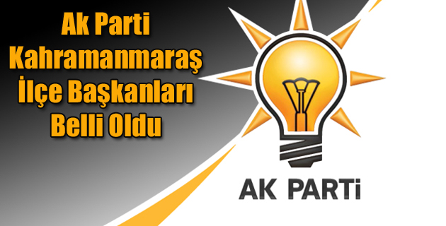 AK Parti Genel Merkezi tarafından Kahramanmaraş’ın 4 ilçesinde yeni İlçe Başkanları belirlendi. AK Parti Genel Merkezi tarafından Kahramanmaraş Onikişubat İlçe Başkanlığı, Türkoğlu İlçe Başkanlı...