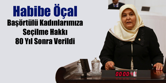Türk Kadınına seçme ve seçilme hakkı tanınmasının 84. yıl dönümünü sebebiyle TBMM Genel Kurul’unda söz alan AK Parti Kahramanmaraş Milletvekili Habibe Öçal, başörtülü kadınlara seçilme hakkının 80 yıl...