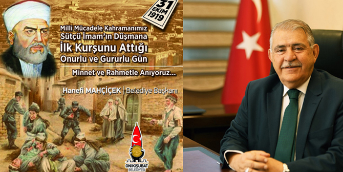 Onikişubat Belediye Başkanı Hanefi Mahçiçek 31 Ekim 1919 tarihinde üstün bir cesarete sahip olan Sütçü İmamın ilk milli mücadele kurşununun atmasının yıl dönümünde bir mesaj yayımladı. Mesajında Maraş...